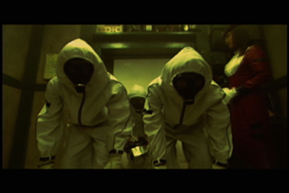 A transport elevator in a dystopian tower becomes a psychological pressure cooker.
